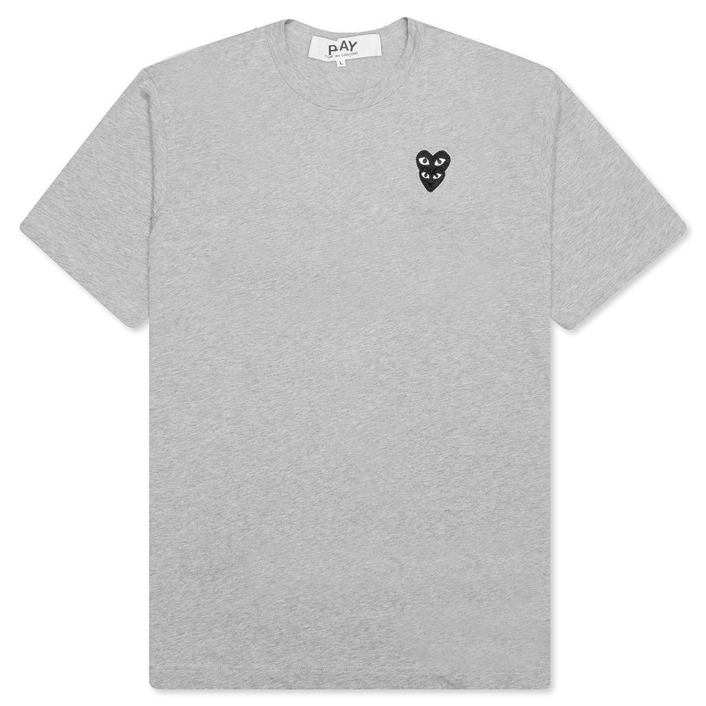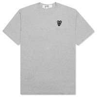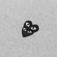 The concept of the Comme des Garcons PLAY line is design by not designing. Characterized by the iconic red heart logo designed by artist Filip Pagowski, the line is a collection of unisex basics, fragrances, and footwear for those who enjoy simplicity. Pictured is the Comme des Garcons PLAY Stacked Heart S/S T-Shirt in Grey. AZ T296 051 1 COMME DES GARCONS PLAY APPAREL HAS A SMALLER FIT, WE RECOMMEND SIZING UP. THIS ITEM IS NOT ELIGIBLE FOR DISCOUNTS OR SPECIAL PROMOTIONS. condition: new - 100% cotton - Ribbed collar - Embroidered logo - Made in Japan - Style no: AZ-T296-051-1