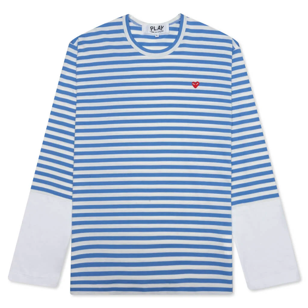COMME DES GARCONS PLAY STRIPE WHITE T-SHIRT - BLUE