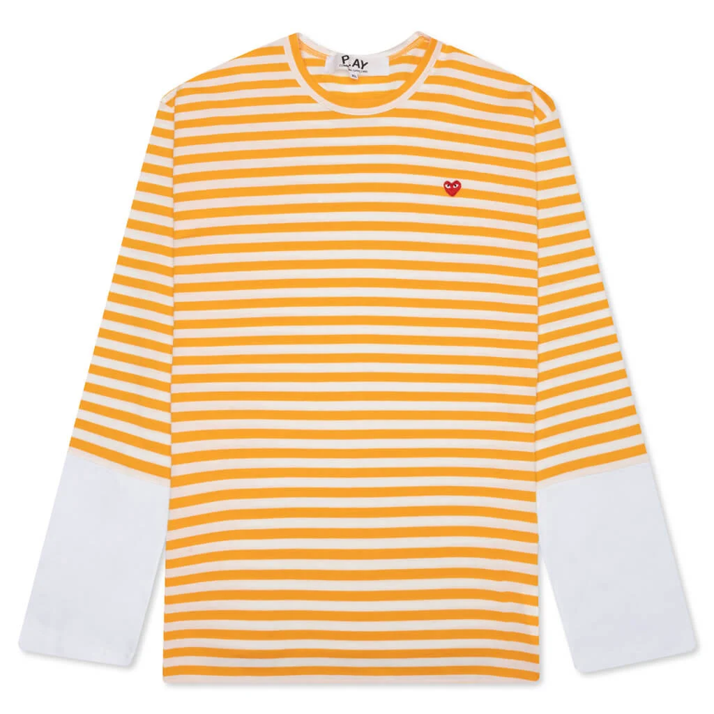 COMME DES GARCONS PLAY STRIPE WHITE T-SHIRT - YELLOW