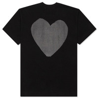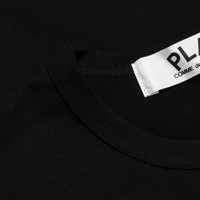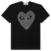 The concept of the Comme des Garcons PLAY line is design by not designing. Characterized by the iconic red heart logo designed by artist Filip Pagowski, the line is a collection of unisex basics, fragrances, and footwear for those who enjoy simplicity. Pictured is the Comme des Garcons PLAY Heart T-Shirt in Black/Black. COMME DES GARCONS PLAY APPAREL HAS A SMALLER FIT, WE RECOMMEND SIZING UP. condition: new - 100% cotton - Ribbed collar - Printed graphic on the front - Style no: AZ-T189-051-1