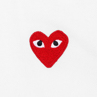 The concept of the Comme des Garcons PLAY line is design by not designing. Characterized by the iconic red heart logo designed by artist Filip Pagowski, the line is a collection of unisex basics, fragrances, and footwear for those who enjoy simplicity. Pictured is the Comme des Garcons PLAY Women's Red Heart Polo Shirt in White. AZ T005 051 5 COMME DES GARCONS PLAY APPAREL HAS A SMALLER FIT, WE RECOMMEND SIZING UP. - 100% Cotton - Embroidered branding - Made in Japan - Style no: AZ-T005-051-5