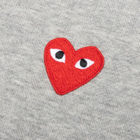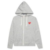 The concept of the Comme des Garcons PLAY line is design by not designing. Characterized by the iconic red heart logo designed by artist Filip Pagowski, the line is a collection of unisex basics, fragrances, and footwear for those who enjoy simplicity. Pictured is the Comme des Garcons PLAY Women's Zip Up in Grey. AZ T167 051 1 COMME DES GARCONS PLAY APPAREL HAS A SMALLER FIT, WE RECOMMEND SIZING UP. - 100% Cotton - Embroidered branding - Zipper closure - Ribbed edges - Made in Japan - Style no: AZ-T167-051-1
