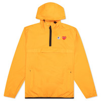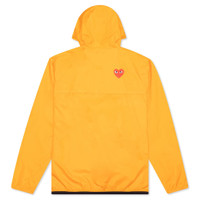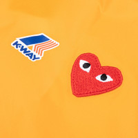 K-Way is most well known for its development of the first windproof and waterproof packable jacket, and the recent collaboration with fashion house Comme des Garcons PLAY incorporates a distinct take on the Le Vrai 3.0 Leon Jacket. The silhouette includes a nylon construction with embroidered branding at the chest. The packable design spotlights waterproof, water repellent, and windproof qualities, while the adjustable hood and full-zip closure provide a functional touch. The heat-taped seams and breathable ripstop fabric complete the look. - 100% nylon - Regular fit - Embroidered branding - Waterproof - Water-repellent - Windproof - Ripstop detailing - Heat-taped seams - Elastic cord hood - Zip closure - Style No: AZ-J502-051-1