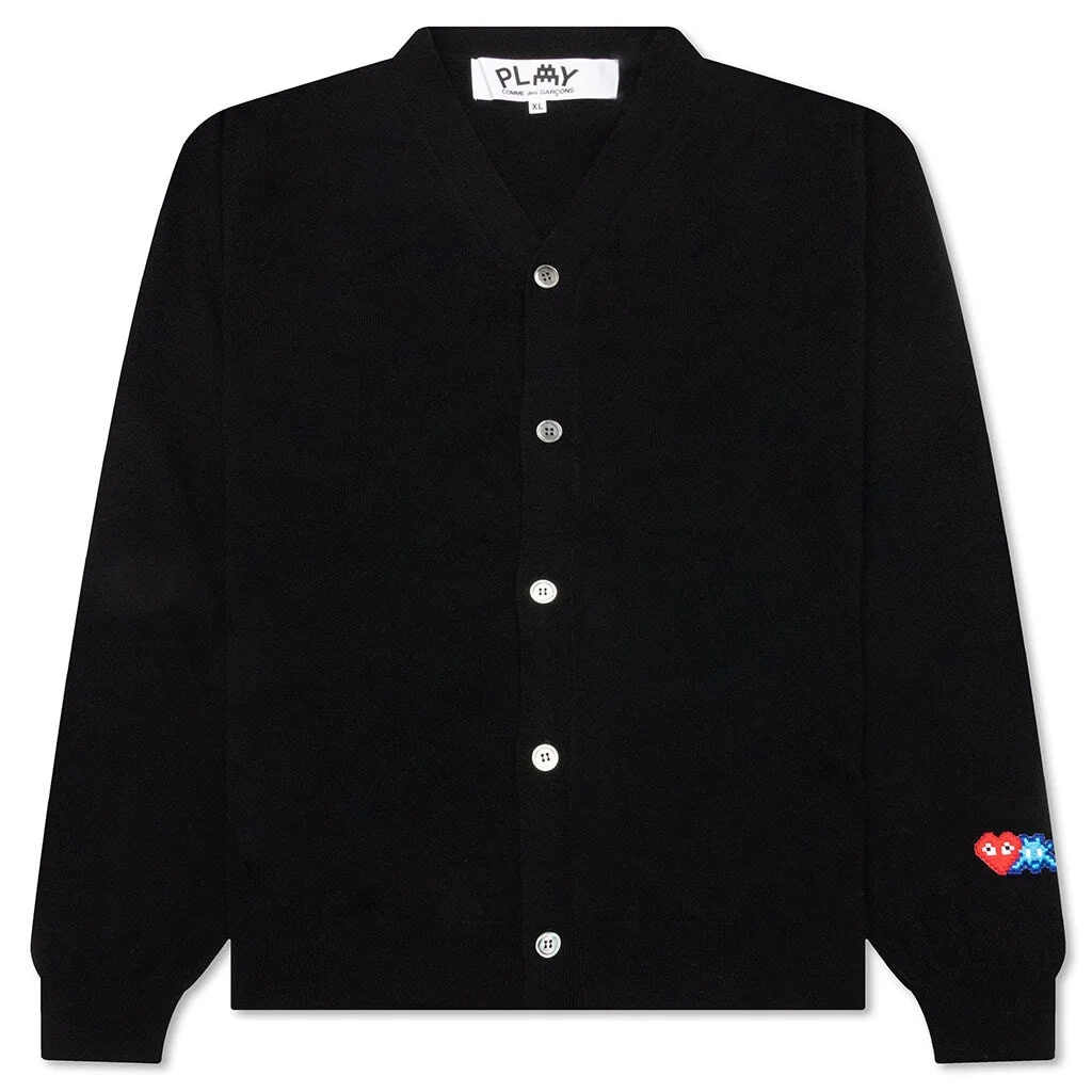 COMME DES GARCONS PLAY X THE ARTIST INVADER BUTTON CARDIGAN - BLACK