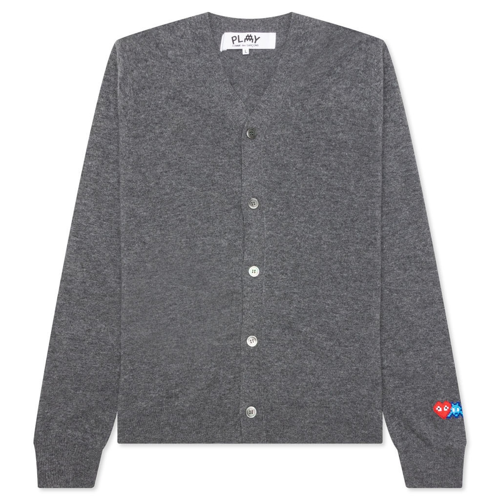 COMME DES GARCONS PLAY X THE ARTIST INVADER BUTTON CARDIGAN - GREY
