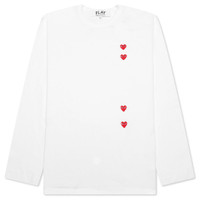 Comme des Garcons PLAY delivers elevated and unisex pieces for everyday wear. The Logo Print Any Heart L/S T-Shirt is composed of cotton and features the signature red heart motif. Finishing touches include the crew neckline, straight hem, and woven branded labels. - 100% Cotton - Made in Japan - Long sleeves - Crew Neckline - Heart motif - Straight hem - Style No: AX-T339-051-3
