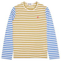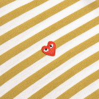 The Comme des Garcons PLAY repertoire introduces the Bi-Color Stripe T-Shirt. Featuring a cotton construction, the silhouette includes an all-over striped design. A ribbed neckline is also placed. An embroidered red heart is placed at the chest for a finished look. - 100% cotton - Ribbed neckline - All-over stripes - Embroidered heart - Style No: AZ-T317-051-5