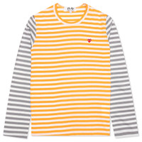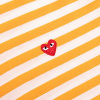 The Comme des Garcons PLAY repertoire introduces the Bi-Color Stripe T-Shirt. Featuring a cotton construction, the silhouette includes an all-over striped design. A ribbed neckline is also placed. An embroidered red heart is placed at the chest for a finished look. - 100% cotton - Ribbed neckline - All-over stripes - Embroidered heart - Style No: AZ-T317-051-2