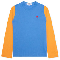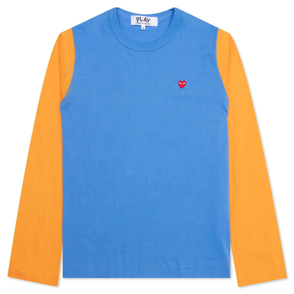 Upgrade your everyday apparel rotation with the Comme des Garcons PLAY Bi-Color T-Shirt. Featuring a cotton construction, the silhouette spotlights a ribbed neckline for added detail. An embroidered bug-eyed red heart motif resides on the chest for a finished look. - 100% cotton - Ribbed neckline - Embroidered heart - Style No: AZ-T315-051-1