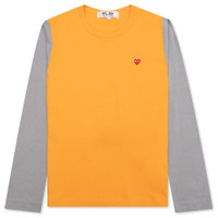 Upgrade your everyday apparel rotation with the Comme des Garcons PLAY Bi-Color T-Shirt. Featuring a cotton construction, the silhouette spotlights a ribbed neckline for added detail. An embroidered bug-eyed red heart motif resides on the chest for a finished look. - 100% cotton - Ribbed neckline - Embroidered heart - Style No: AZ-T315-051-2