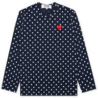 Elevated yet comfortable, the Comme des Garcons PLAY Women’s Polka Dot Long Sleeve T-Shirt makes an impression on any apparel collection. The cotton-cut silhouette features a subtle crew neckline along with an all-over polka dot print. An embroidered heart motif at the chest finishes the remainder of the design. - 100% cotton - Crew neckline - Polka dot print - Embroidered motif - Style No: AZ-T165-051-2