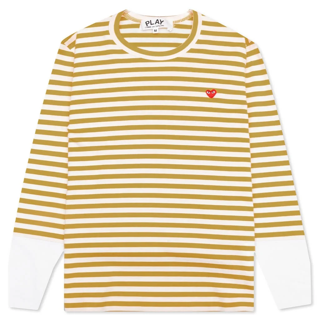 Make an impression on your next outfit with the Comme des Garcons PLAY Women’s Striped White Sleeve L/S T-Shirt. This cotton-cut design sports a subtle crew neckline along with contrasting sleeves. An embroidered heart at the chest finishes the look. - 100% cotton - Crew neckline - Striped pattern - Embroidered motif - Style No: AZ-T319-051-5