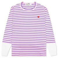 Make an impression on your next outfit with the Comme des Garcons PLAY Women’s Striped White Sleeve L/S T-Shirt. This cotton-cut design sports a subtle crew neckline along with contrasting sleeves. An embroidered heart at the chest finishes the look. - 100% cotton - Crew neckline - Striped pattern - Embroidered motif - Style No: AZ-T319-051-4