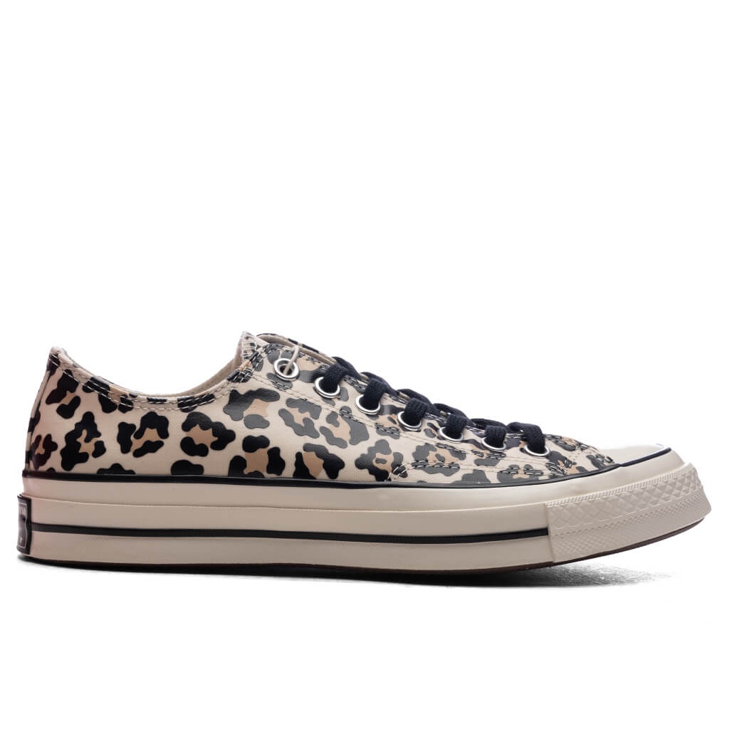 Originally released in 1917, the Converse Chuck 70 is a re-crafted sneaker that uses modern details to celebrate the original Chuck Taylor All-Star from the 1970s. This Chuck 70 Ox features an all-over leopard print with a glossy finish. With a low top, the signature All-Star license plate on the heel and the vulcanised sole complete the look. - Canvas upper - All-over print - Vulcanised sole - Tonal toe box - Runs a half-size large - All sizes are listed in US Men's sizing unless stated otherwise - Style no: A15033C