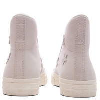 The Converse x Daily Paper collaboration introduces a new iteration of the Star Player 76 Hi. This shoe has a monochromatic hue and is composed of leather on the upper. Suede eye stays offer dimension, and suede star motifs decorate the lateral sides. The shaggy white laces and the mesh tongue complete the look. - Leather upper - Suede eye stays - Suede star motif - High-top - Mesh tongue - Shaggy laces - Rubber outsole - All sizes are listed in US Men's sizing unless stated otherwise - Style No: A13859C-100
