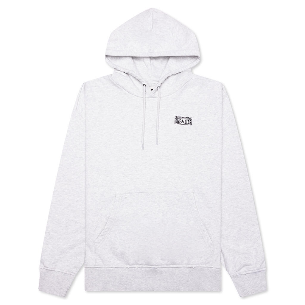 The Converse x This is Never That Gold Standard Hoodie in Light Retro Grey Heather reimagines a classic silhouette with a laid-back yet refined edge. Crafted from a soft cotton-polyester blend, it offers a relaxed fit that pairs effortlessly with any outfit. Distressed details lend a subtle, lived-in feel, while the embroidered logo adds a touch of understated branding. Functional touches include a drawstring hood, a kangaroo pocket for essentials, and ribbed cuffs and hem to maintain its shape. - 84% Cotton, 16% Polyester - Relaxed Fit - Distressed Details - Drawstring Hood - Embroidered Logo - Kangaroo Pocket - Ribbed Cuffs and Hem - Style No: 10027832-A01