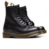 One of the most recognizable boots by Dr. Marten, the Black Smooth footwear piece emulates punk and comfort. The chunky rubber sole adds an elevated look to the boot not taking away from the air-cushioned insole. The leather upper is accented with yellow stitching known throughout the brand. - Leather fabric - Synthetic sole - Stitched details - All sizes are listed in U.S. Men's sizing unless stated otherwise - Style No: 11821006