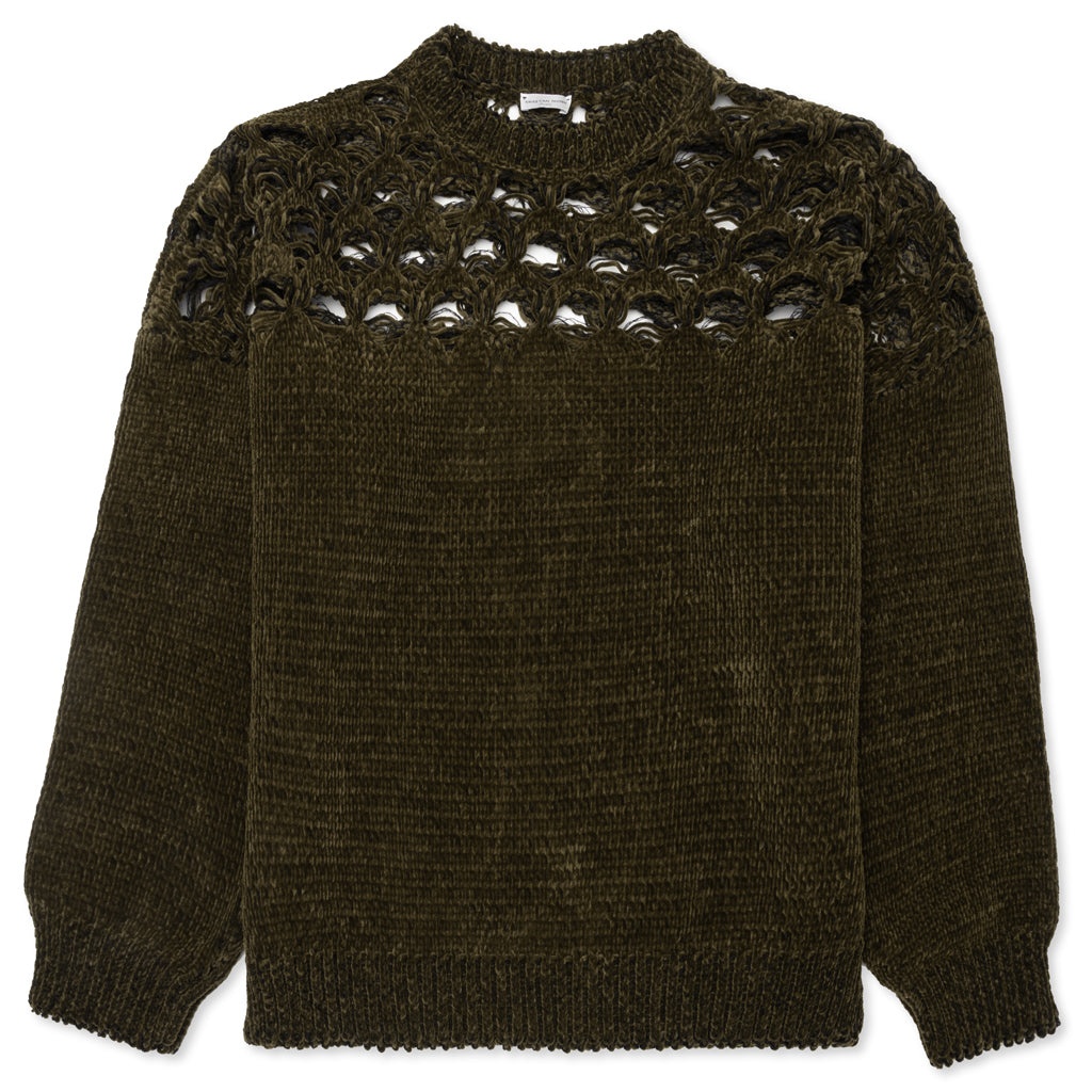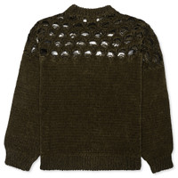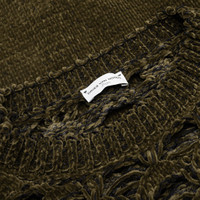 Dries Van Noten's Hamer Sweater is expertly crafted from a soft blend of linen and polyamide. This dark khaki sweater features loosely woven holes on the top half of the sweater for a distressed finish, adding a rugged yet sophisticated look to its design. - 95% Linen, 5% Polyamide - Regular fit - Long sleeves - Distressed finish - Style No: 241-021223-8708-606