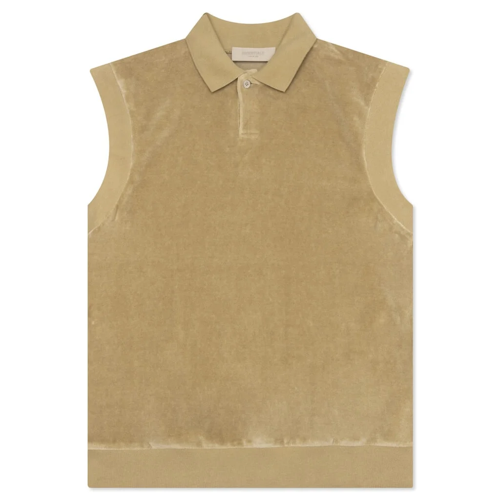 ESSENTIALS WOMEN'S VELOUR SLEEVELESS POLO - OAK