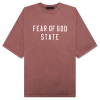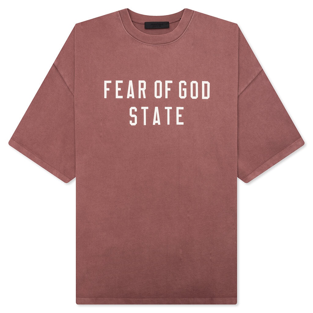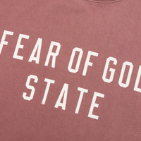 The Heavy Crewneck Tee from Fear of God Essentials is elevated in a 380-gram heavy cotton jersey to provide pronounced weight and structure. The rib-knit crewneck tee fits relaxed in the body with dropped shoulders. A collegiate-inspired "Fear of God State" graphic is screen printed on the center front, and the Essentials Fear of God rubberized label is at the back collar. ALL SALES ARE FINAL. - 100% Cotton - Essentials fit - Relaxed body and sleeves - Screen-printed branding - Ribbed crewneck - Rubberized label - Style No: 125BT242006F