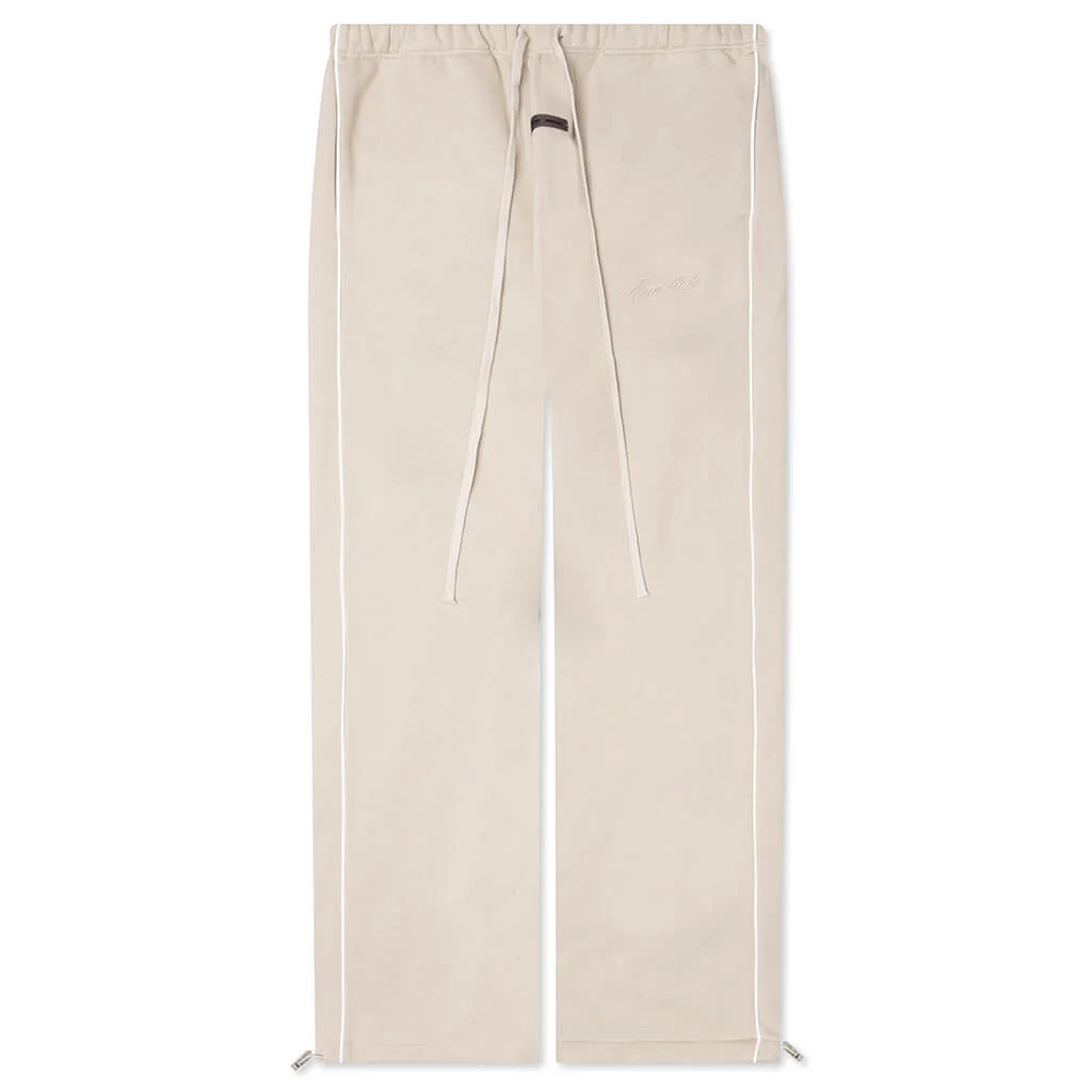 The Relaxed Fleece Sweatpant With Piping combines everyday comfort with signature Fear of God Essentials styling. Made from a cotton-polyester fleece, the sweatpant is cut to have a relaxed, straight leg fit. Functional details include an elastic waistband, elongated drawstrings, side-seam pockets, and bungee cord cuffs. Branding can be found through an embroidered logo and rubberized label, while contrast piping details round out the design and delivers elevated simplicity. THIS PRODUCT DOES NOT QUALIFY FOR DISCOUNTS OR SPECIAL PROMOTIONS. - 80% Cotton, 20% Polyester - Relaxed fit - straight leg - Elastic waistband with drawstring - Side-seam pockets - Piping detail - Embroidered 'Essentials' logo - Fear of God Essentials rubberized label - Bungee cord cuffs - Style No: 130SP258061F