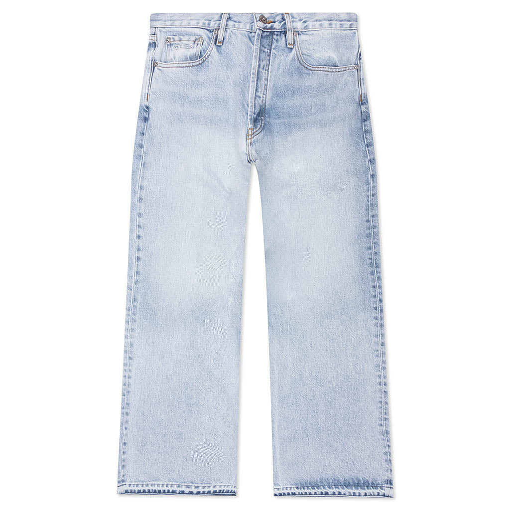 Introducing the Melrose Pant from Gallery Dept. Cut from cotton, these jeans are designed to have a baggy and wide leg fit. Featuring a 5-pocket design, button-fly, and a released hem. The piece is completed with a signature leather jacron and faded wash. MDP 40092 INDI - 100% Cotton - Baggy fit - Wide leg - 5-pocket design - Button-fly - Released hem - Leather Gallery Dept. jacron - Faded wash finish - Style No: MDP-40092-INDI
