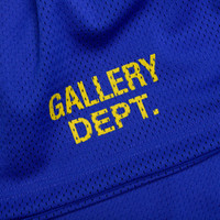 The Gallery Dept. Venice Court Shorts deliver a modern update to a classic athletic silhouette. Made from breathable mesh jersey, they feature a slightly shorter 8.25" inseam for a contemporary fit. The balloon shape offers relaxed comfort, while the elastic waistband with inner drawstring ensures a secure feel. The shorts are finished with front slip pockets, white striped piping, and the GD ENGLISH logotype at the front. They are double-lined for added structure and durability. Made in the USA. VCS 5245 ROYA - 100% Polyester - Breathable mesh - 8.25" inseam - GD ENGLISH Logotype - Balloon fit - Elastic waistband - Interior drawstring - Side seam pockets - Striped piping - Double-lined - Style No: VCS-5245-ROYL