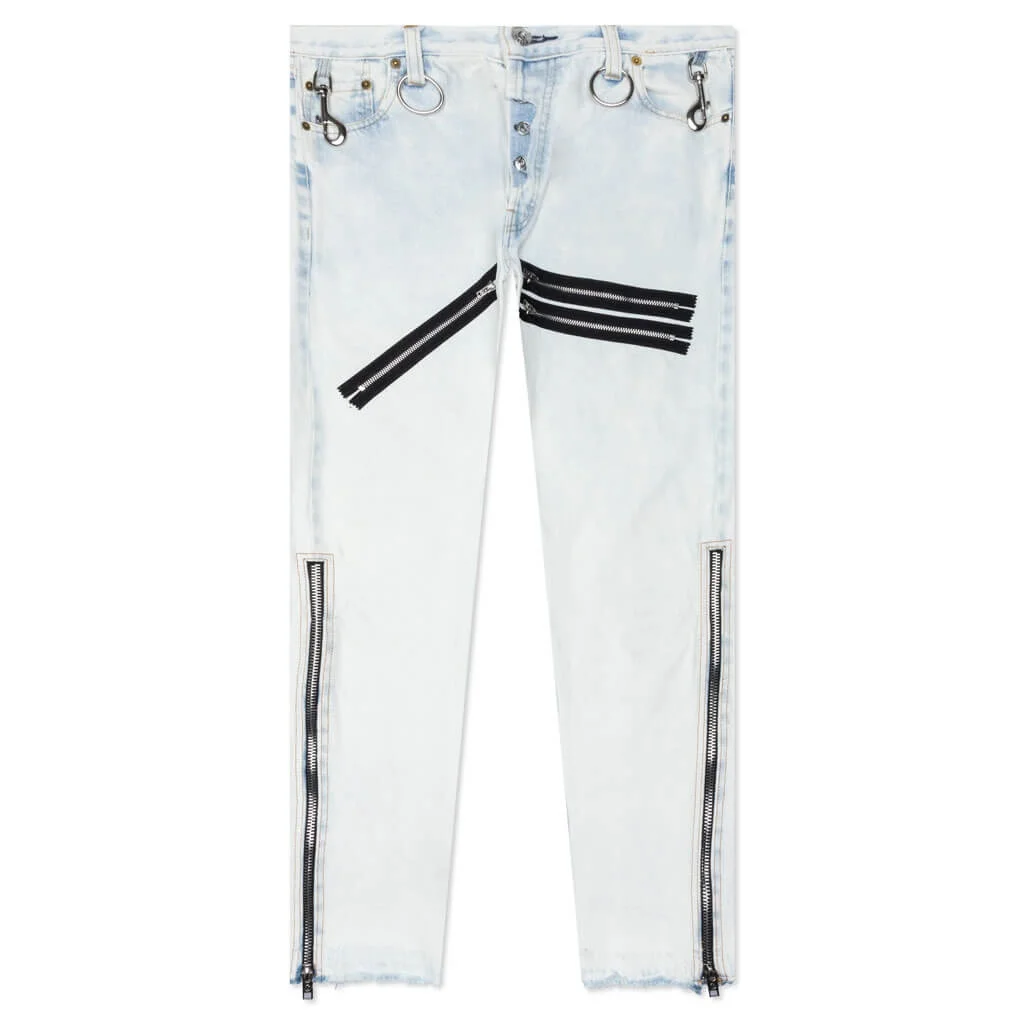 The Gallery Dept. Weapon World 5001 makes an impression on any streetwear apparel rotation. Made from cotton, the jeans feature a straight leg in addition to a logo patch at the rear. Silver-tone hardware is seen, while the belt loops and decorative zip detailing provide further dimension. The five-pocket design finishes the look. DUE TO THE LIMITED NATURE OF THIS PRODUCT, ALL SALES ARE FINAL. THIS ITEM IS NOT ELIGIBLE FOR DISCOUNTS OR SPECIAL PROMOTIONS. THIS ITEM IS FINISHED BY HAND, WHICH MAY RESULT IN A SLIGHT VARIATION FROM THE IMAGES ABOVE. - 100% cotton - Straight leg - Zip fly - Silver-tone hardware - Belt loops - Logo patch - Decorative zip detailing - Five pocket design - Style No: 5001-WW80-INDI