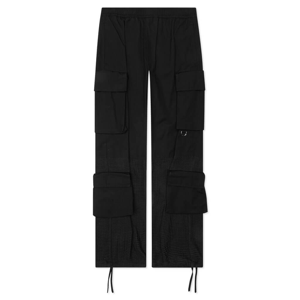 The Givenchy Cargo Pants are a premium apparel must-have. The design features a cotton construction along with mesh below the knees. An elastic waistband is also placed, while the two side pockets and two flap pockets offer further functionality. The two flap pockets finish the remainder of the design. - Cotton construction - Mesh knees - Elastic waistband - Side pockets - Flap pockets - Style No: BM517N14RB-001