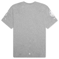 The Givenchy Crest T-Shirt in Light Grey Melange offers a blend of style and sophistication. With its classic crew neck design, this shirt features the iconic Givenchy Crest emblem adorned with mixed prints and embroideries on the front and sleeves, adding a touch of luxury to your look. The small 4G emblem printed on the lower back finishes the look. - Crewneck design - 100% cotton - Givenchy Crest emblem with mixed prints - Small 4G emblem printed on the lower back. - Classic fit - Style no: BM71JA3YL6-055