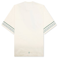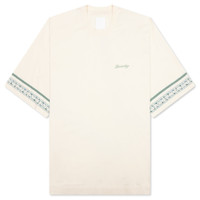 The Floral Detail Cotton T-Shirt in Ivory combines minimalist design with artistic touches. Made from soft cotton, this short-sleeved t-shirt features a classic crew neck and a small GIVENCHY signature embroidered on the chest. The polka flower print on the bottom of the sleeves adds a subtle yet playful accent, while a small 4G emblem is embroidered on the lower back. With its classic fit, this piece brings understated elegance to everyday wear. - Short-sleeved t-shirt in cotton. - Crew neck. - Small GIVENCHY signature embroidered on the chest. - Polka flower print on the bottom sleeves. - Small 4G emblem embroidered on the lower back. - Classic fit. - Style No: BM712H3YN5105
