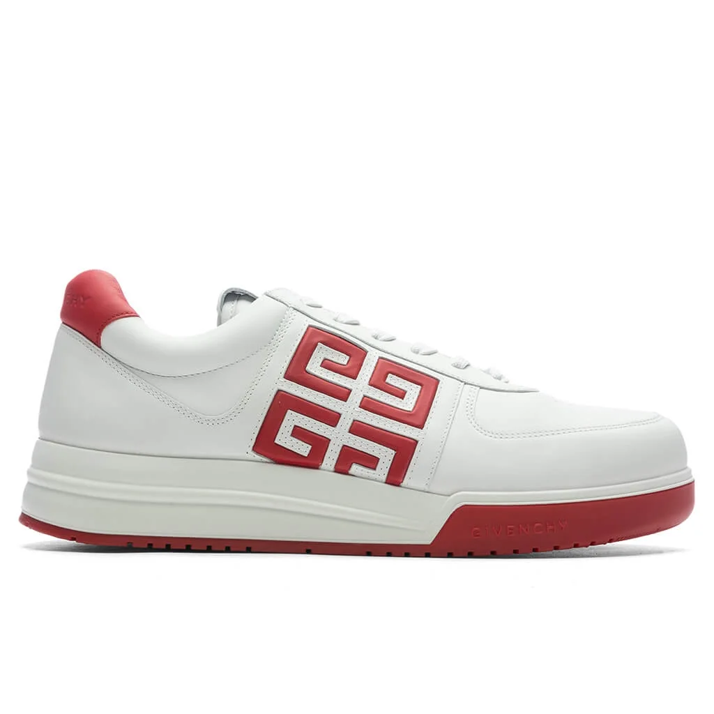 Givenchy introduces the G4 Low SNeakers. Taking on a leather upper, the lace-up sneakers spotlight debossed and printed branding throughout the exterior and interior. Leather comprises the lining, while signature branding and a 4G emblem reside at the tongue. The rubber outsole underneath wraps up the rest of the design. - Leather upper - Lace-up front - Emblem branding - Leather lining - Printed branding - Rubber outsole - All sizes are listed in European Men’s sizing unless stated otherwise - Style No: BH007WH1DE112