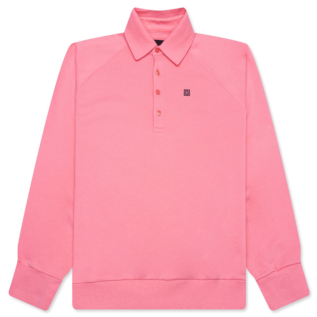LOGO EMBROIDERED LONG-SLEEVE POLO SHIRT - CANDY PINK