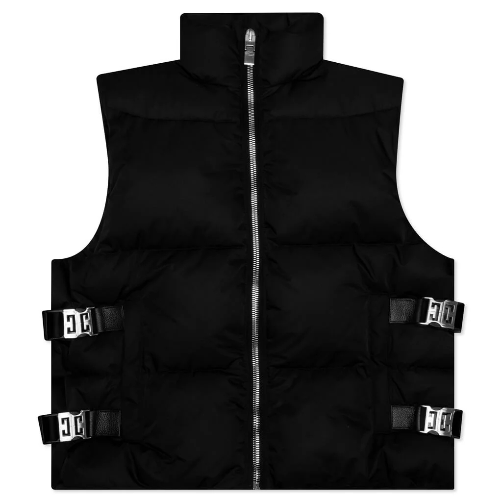 SLEEVELESS W/ METALLIC DETAILS PUFFER JACKET - BLACK