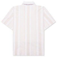 STRIPPED COTTON TOWELLING BOXY FIT SHIRT - WHITE/BEIGE