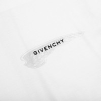 The T-Shirt in Cotton GIVENCHY Wings in White offers a bold, graphic design with signature detailing. Crafted from cotton, this short-sleeved t-shirt features a classic crew neck and a striking wing print on the front, accompanied by an embroidered GIVENCHY signature. The wings print continues on the upper back, creating a cohesive design. - Short-sleeved t-shirt in cotton. - Crew neck. - Wing print and embroidered GIVENCHY signature on the front. - Wings print on the upper back. - Classic fit. - Style No: BM71JA3YN1100