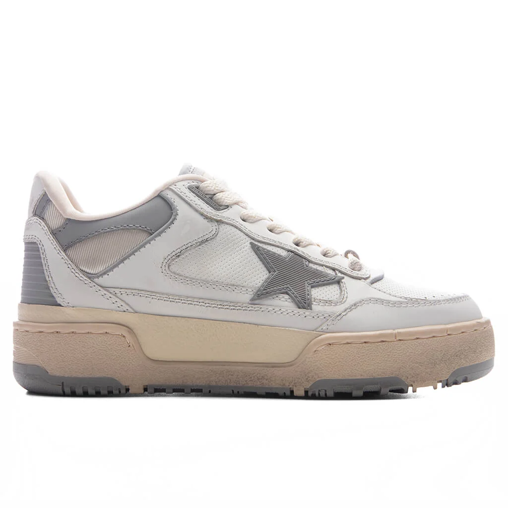 The Women's Forty2 combines retro athletic energy with Golden Goose's signature handcrafted details. Crafted from premium leather, this shoe features micro-perforated leather panels and nylon inserts that enhance the layered aesthetic. A 3D-textured grey TPU star and coordinating grey leather insert at the back adds contrast. The double-density foam and leather insole ensures comfort, while the rubber double outsole rounds out the design. - Leather upper - Micro-perforated leather inserts - 3D-textured leather insert at the back - Nylon tongue and inserts - TPU star logo - Golden Goose branding - Lived-in finish - Leather insole and double-density foam - Rubber double outsole - All sizes are listed in European Women's sizing unless stated otherwise - Style No: GWF00630.F006886.10973