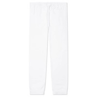 Elevated streetwear label Helmut Lang introduces the Core Jogger. Featuring a cotton construction, the signature silhouette incorporates an elastic waistband with slash pockets. Ribbed details are placed at the waistband and cuffs. Screen-printed branding at the left thigh completes the overall look. L09HM217 100 WHIT - 100% cotton - Elastic waistband - Side pockets - Screen-printed branding - Elastic cuffs - Style No: L09HM217-100