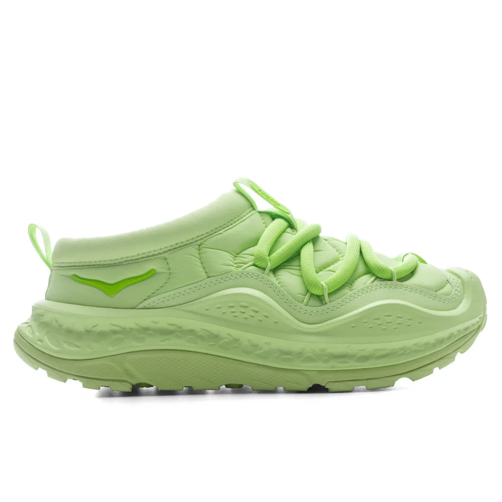 A recovery design with cutting edge technology for a bold expression of the Ora, the shoe features a futuristic silhouette with the same post-run relief as the original Ora, the Ora Primo is elevated with a soft knit collar, elastic lace system, and insulated puff upper for a timeless slip-on that provides comfort. - Insulated puff upper - Knit collar - Zig-zag stitch detail - Round elastic lace system - Protective toe bumper - 30% recycled rubber outsole - Style No: 1141570-HHN