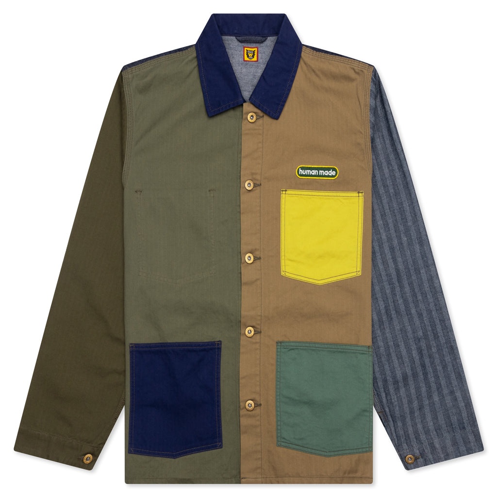 Human Made introduces the Crazy Coverall Jacket #1 in its new collection. Composed of cotton, this durable garment features a full button-down closure and a pointed collar. The look is highlighted by the color-blocking elements and chain-stitched graphics at the back. Some finishing touches include button cuffs and patch pockets. - 100% Cotton - Button closure - Pointed collar - Patch pockets - Chain-stitched graphics - Branded patch - Style No: HM27JK011OD