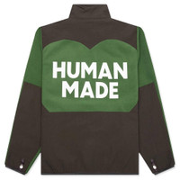 The Human Made Fleece jacket is the perfect addition to anyone's outerwear collection. This relaxed-fit piece boasts the brand's signature logo on both the chest and back, making a statement. Cozy fleece and zip welt pockets keep you warm and secure, while the zip closure offers easy on-and-off wear. - Fleece construction - Zip closure - Zip pockets - Mock neckline - Style No: HM26JK039-GRN