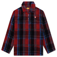 The Fleece Pullover by Human Made is adorned with a plaid pattern weave. Crafted from polyester and nylon, it is designed to have a relaxed fit with a polo-collar. The button up pullover is decorated with a wool-printed logo on the back and embroidered logo on the chest. - 94% Polyester, 4% Wool - Polo-collar - Embroidered brand logo - Wool-printed logo - Style No: HM30CS015-RED