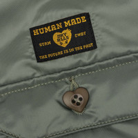 Taking cues from military flight jackets, Human Made presents the Padded CPO Shirt. It is crafted from a premium nylon twill with light padding for insulation and a durable finish. The military influence can be seen throughout in the olive exterior, safety orange lining, and custom embroidered patches at the sleeve and chest. It has a full button closure with flap pockets at the chest and a pointed collar to complete the design. - 100% Nylon - Pointed collar - Woven patches - Light padding - Flap pockets - Button closure - Style No: HM27SH002OD