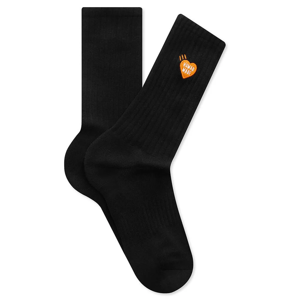 The Pile Socks are crafted from a blend of cotton, acrylic, polyester, nylon, and spandex. Designed to have a mid-length fit, the socks feature a padded footbed and ribbed design, offering additional comfort and cushioning. The accessory is complete with an embroidered Human Made heart logo. - 57% Cotton, 25% Acrylic, 8% Polyester, 8% Nylon, 2% Spandex - Mid-length - Ribbed design - Embroidered branding - Padded footbed - Style No: HM30GD064-BLK
