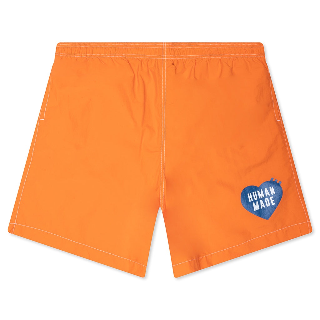 Dive into summer with the Human Made Swim Shorts, constructed with a nylon shell and polyester lining. Designed for an easy fit, they feature an elastic waistband with custom-branded drawstrings, side pockets, and a rear velcro pocket. Finished with a signature screen-printed logo on the leg. - Shell: 100% Nylon - Lining: 100% Polyester - Elastic waistband - Custom-branded drawstrings - Side pockets - Rear velcro pocket - Screen-printed graphic - Style No: HM29PT024-ORA