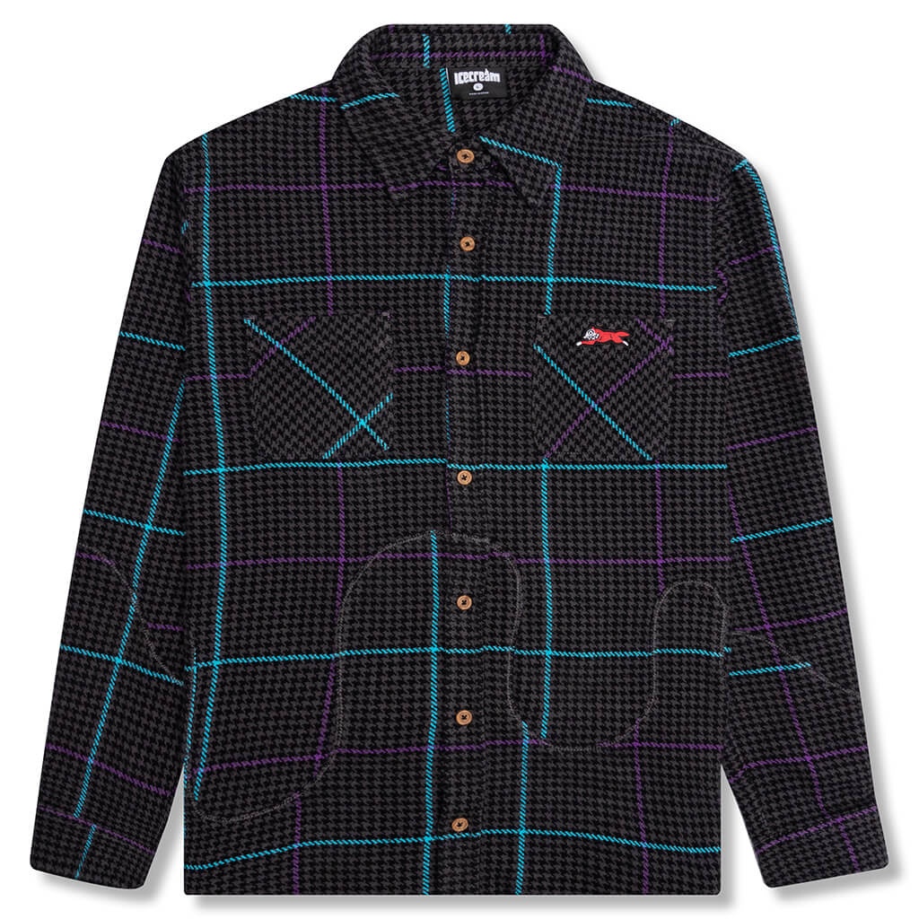 Icecream’s Big Melt L/S Woven elevates the traditional flannel. This design is cut from cotton plaid and incorporates barrel cuffs with button-up closure and a flat collar. A cut and sewn drip graphic spotlight the design, while the chest pockets are geared more towards a functional approach. Its woven label placed upon it completes the look. FINAL SALE ITEM. NOT ELIGIBLE FOR RETURNS/CANCELLATIONS. 421 1600 BLAC - Cotton plaid blend - Button-up closure - Flat collar - Chest pockets - Woven label - Cut and sewn drip - Style No: 421-1600-PLA