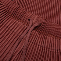 The Homme Plisse Issey Miyake August Relaxed Fit Pants showcase the brand’s signature pleated texture throughout—a hallmark of its innovative design language. Crafted from 100% polyester, the lightweight fabric is quick-drying and wrinkle-resistant. The silhouette features a button fly, elastic waistband with drawcord, and side pockets. - 100% Polyester - Signature pleated pattern - Wrinkle resistant - Quick dry - Button fly - Elastic waistband - Style no: HP58JF084-46