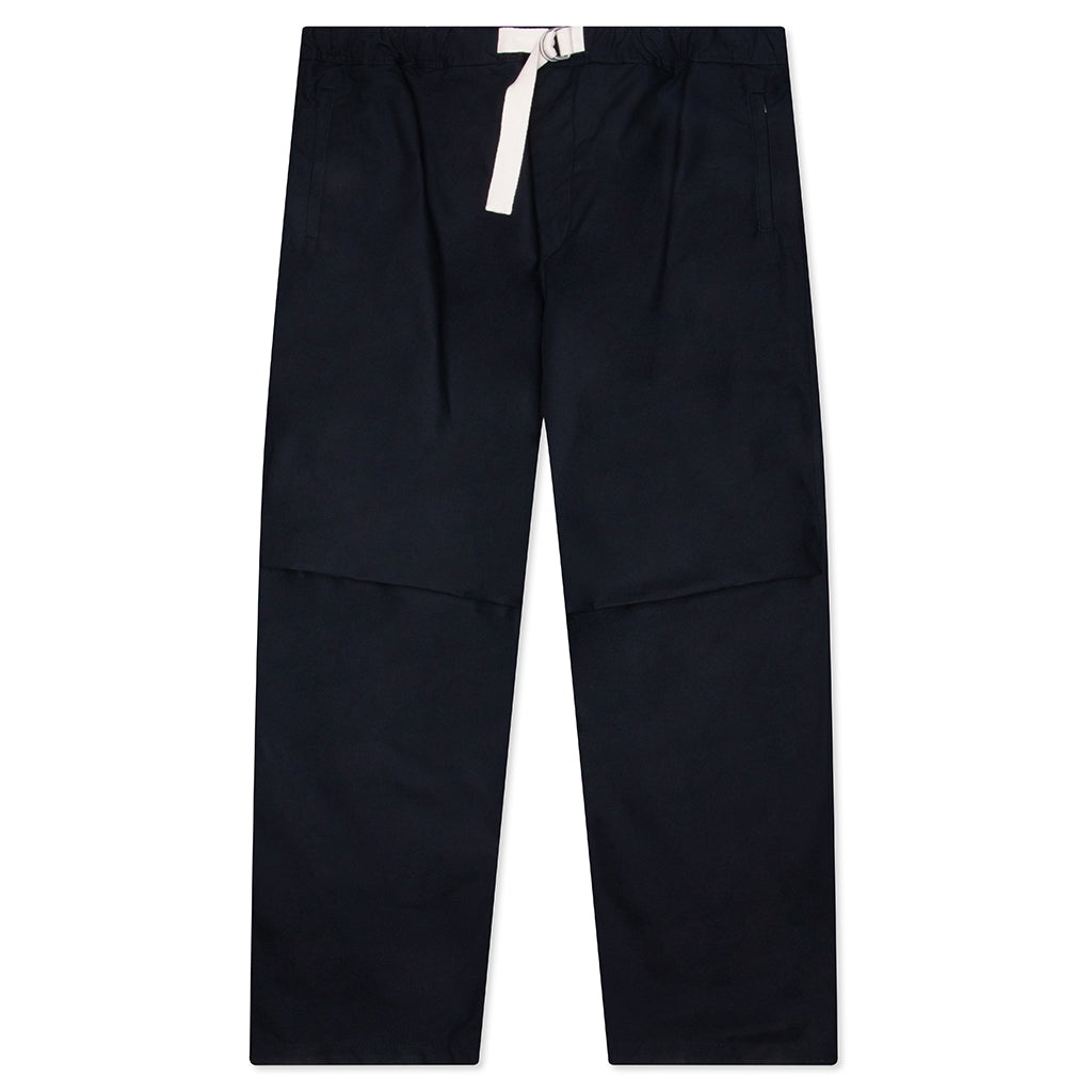 The Jil Sander pants are constructed from water-repellent, organic, textured cotton. These Italian-made trousers offer a sleek yet versatile silhouette. An elasticized waist with an integrated cotton belt and D-ring closure ensures a secure, adjustable fit, while knee darts enhance mobility and structure. Thoughtful details like zip-closure welt pockets and a subtle embroidered monogram above the back right pocket add to the brand’s understated sophistication. - 100% Cotton - Elastic waistband - Integrated belt - D-ring closure - Zipper pockets - Knee darts - Embroidered detailing - Style No: J47KA0268-J45296-400