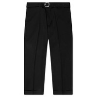 The Gabardine Belted Trousers in Black are crafted from wool with a 100% cotton lining, combining refined texture with comfort. These relaxed-fit gabardine trousers feature pleats at the front waistband for a tailored touch and include functional details like belt loops, a detachable pin-buckle belt, and four-pocket styling. The zip-fly closure adds a classic finish to this sophisticated design. - 100% wool. Lining: 100% cotton - Relaxed-fit wool gabardine trousers. - Belt loops - Detachable pin-buckle belt - Four-pocket styling - Zip-fly - Pleats at front waistband - Style No: J22KA0230-J40002-001