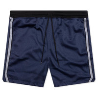 The John Elliott Sigma Shorts in Gold are crafted from hoops-inspired mesh fabric, offering a relaxed and slightly cropped fit for a sporty look. They feature two-pocket styling, a ribbed drawstring waist, and double-taped side trim with vented cuffs. Fully lined and made from 100% polyester. - 100% Polyester - Two-pocket styling - Ribbed drawstring waist - Double-taped side trim - Style no: C66M2344A